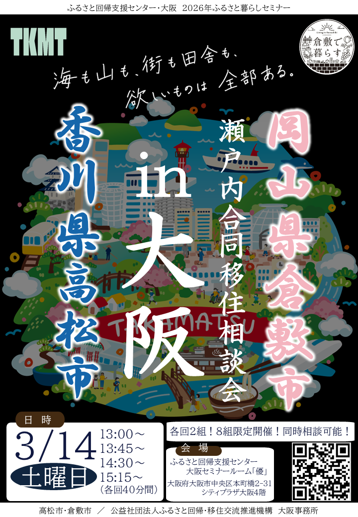 【3/14(土)】岡山県倉敷市&香川県高松市瀬戸内合同移住相談会 in 大阪を開催します!